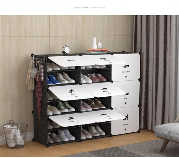 ชั้นวางรองเท้าหลายชั้น กันฝุ่น เรียบง่าย
