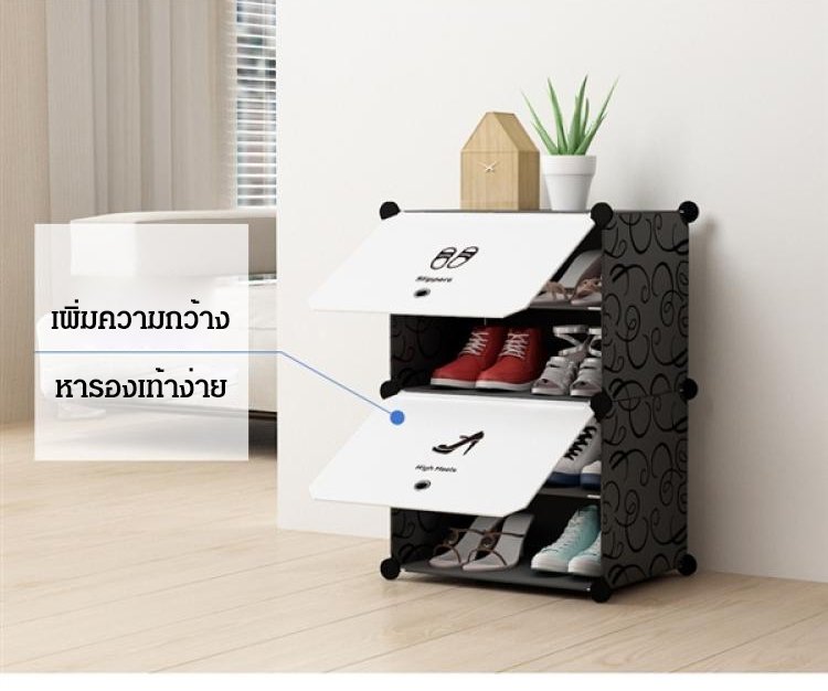 ความจุขนาดใหญ่ ประหยัดพื้นที่ กันฝุ่น กันน้ำ ช่องวางรองเท้าปรับได้ เพื่อให้วางรองเท้าหุ้มข้อสูง รองเท้าคู่ใหญ่ได้ ติดตั้งง่าย รับน้ำหนักได้ดี